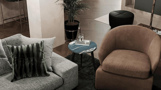 USHAZ Round Side Table - Small Side Table Living Room, End Table, Round Coffee Table 40(D) x 49(H) CM - (Dark Teal & Gold Stone)
