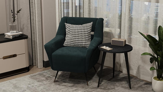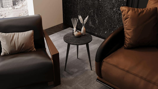 USHAZ Round Side Table - Small Side Table Living Room, End Table, Round Coffee Table 40(D) x 49(H) CM - (Black Rock)