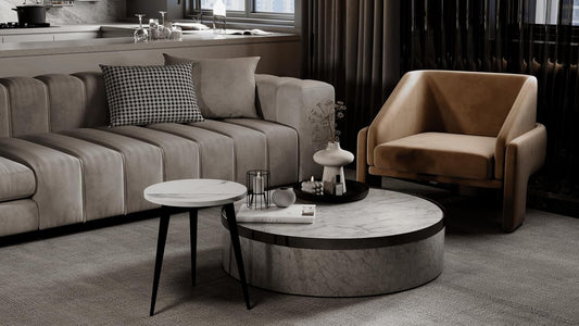USHAZ Round Side Table - Small Side Table Living Room, End Table, Round Coffee Table 40(D) x 49(H) CM - (White Marble)